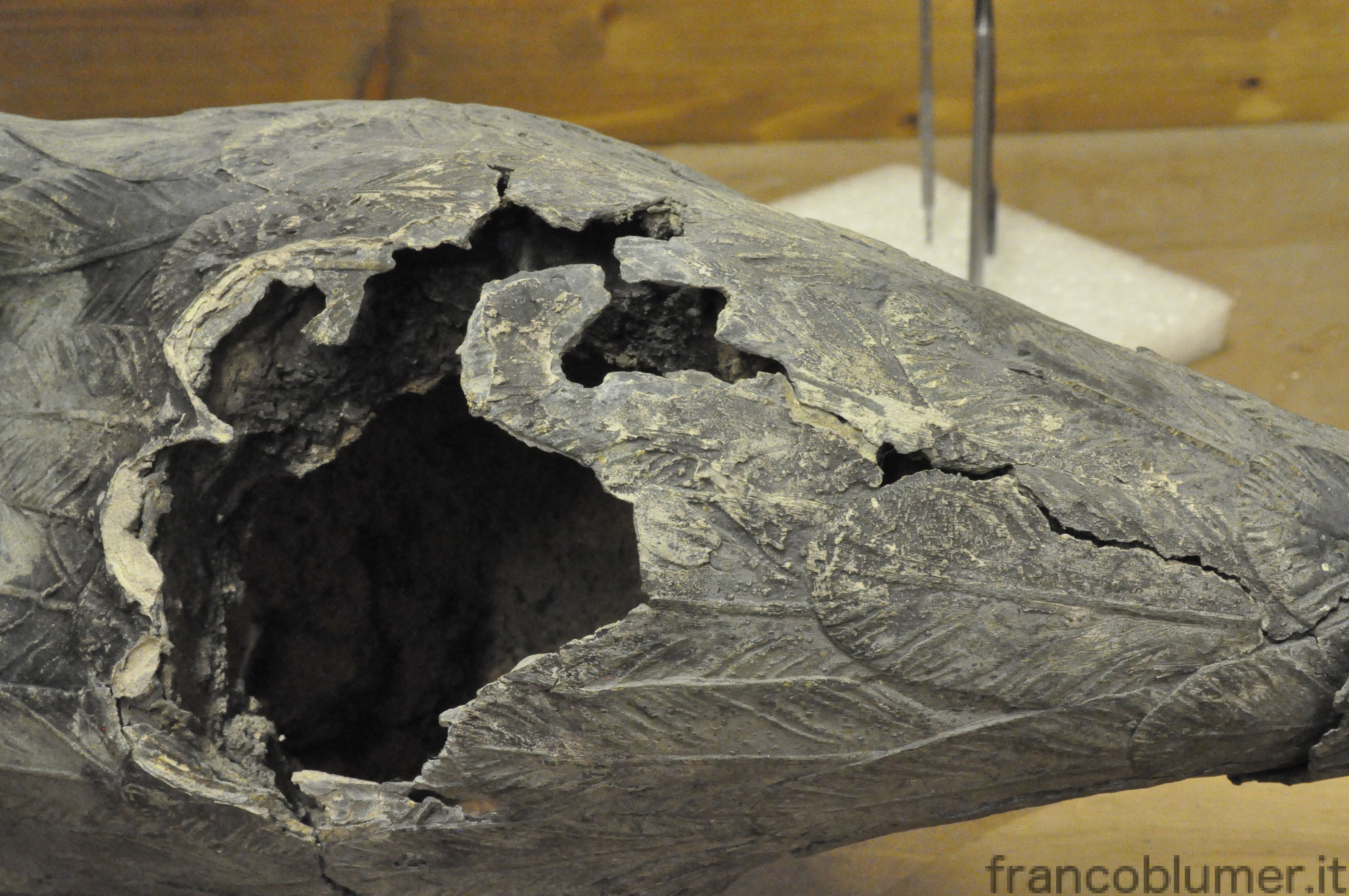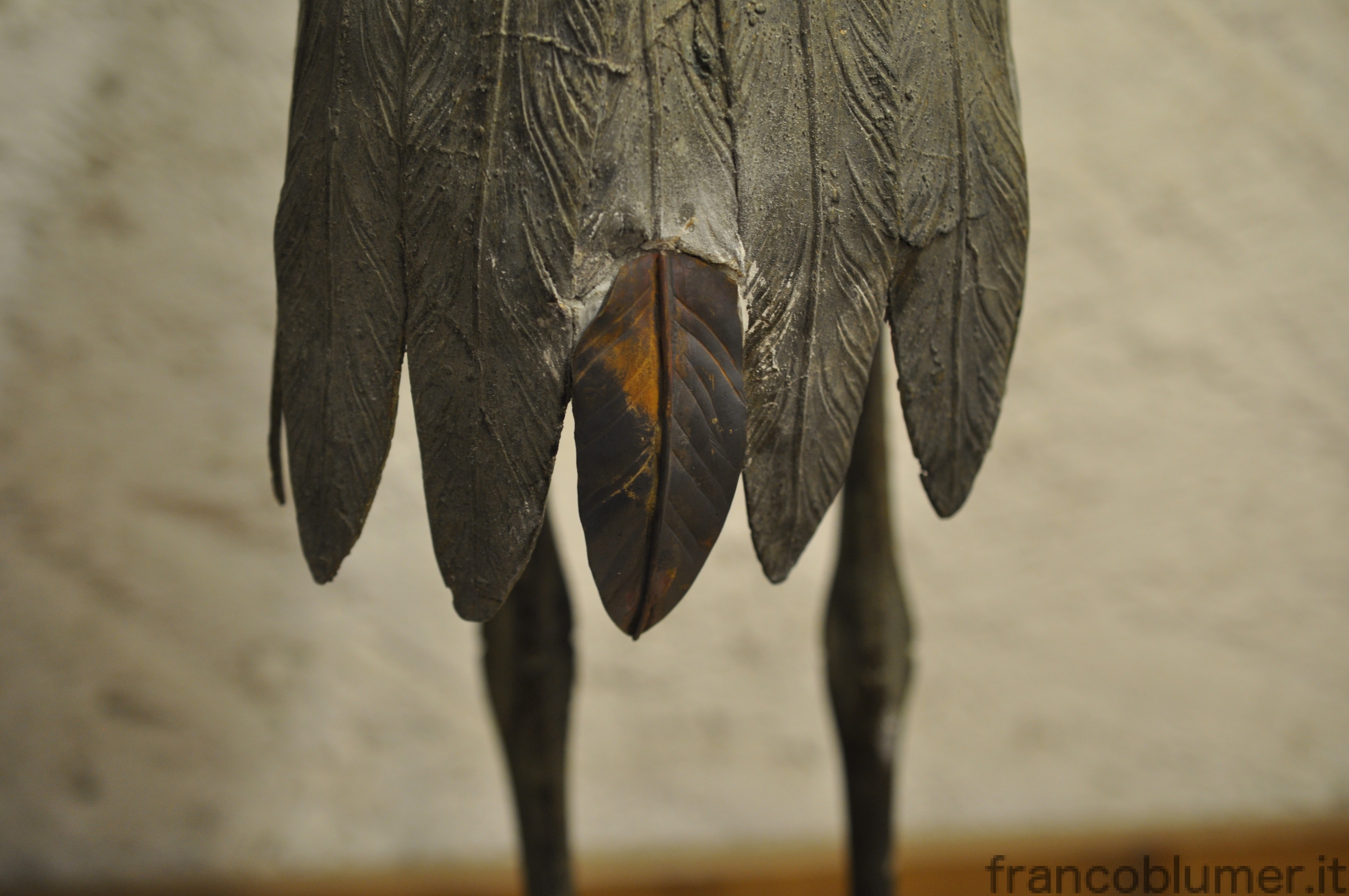 L’airone presentava la frattura di una gamba e del becco, una grande lacuna all’ altezza del petto, una penna mancante e una fratturata, una zampa staccata.