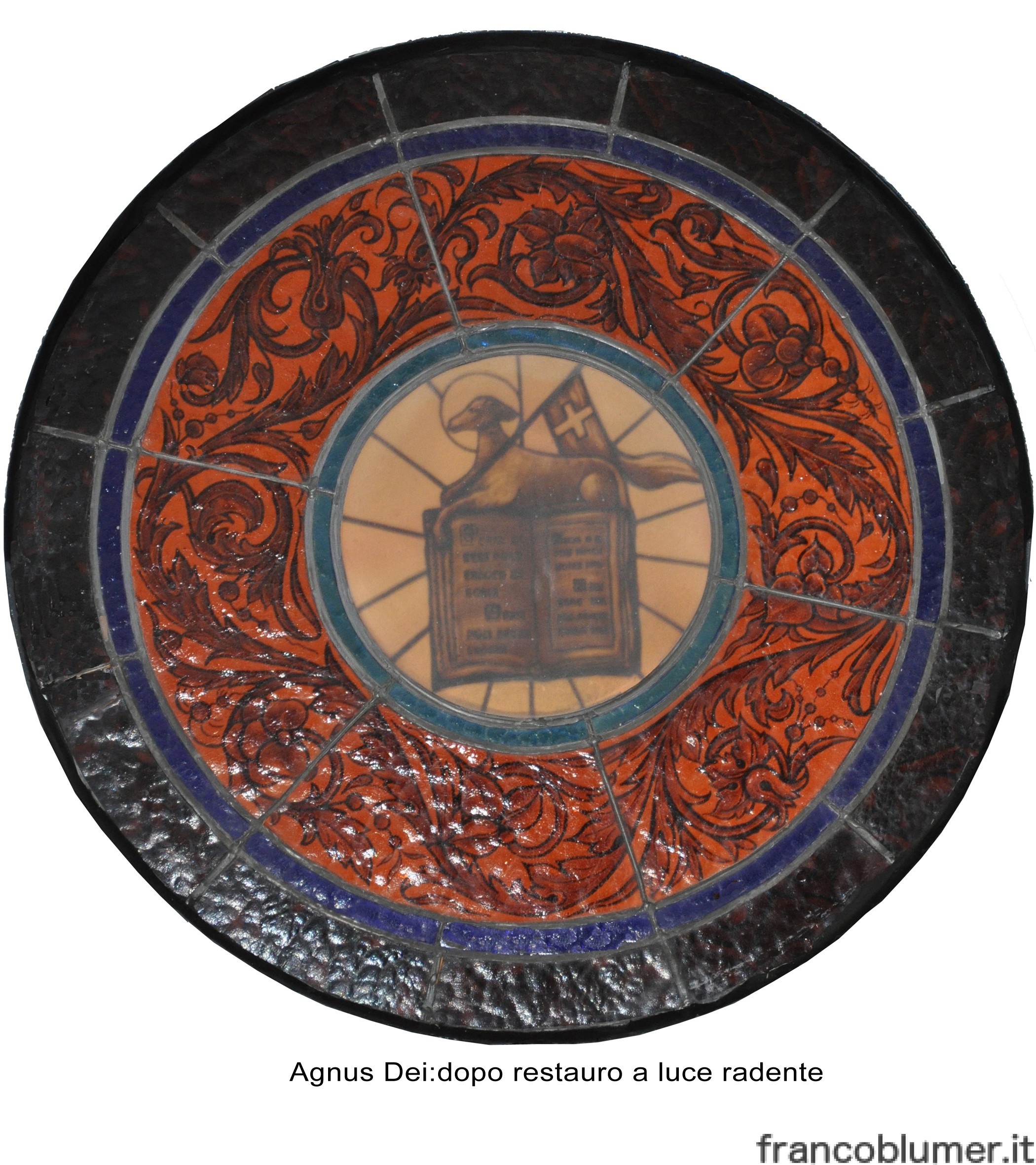 Il consolidamento riguarda l’armatura o cornice che supporta la vetrata e i piombi: dopo un attento esame preliminare si passa a rinforzare le saldature e a cambiare i segmenti di piombo solo se in condizioni irrecuperabili, perché riteniamo importante il mantenimento dei piombi originali determinante come documentazione storica.
